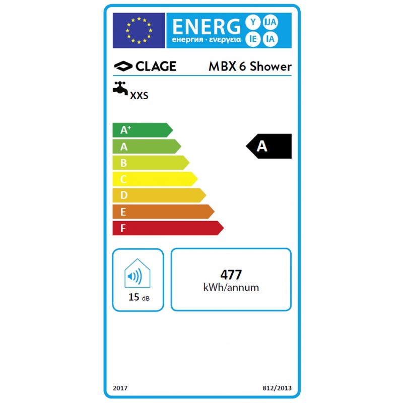 CLAGE MBX6 je kompaktní elektronicky řízený průtokový ohřívač vody určený pro jednoduchý a úsporný ohřev teplé vody pro jednu sprchu. Díky malým rozměrům je ideální do prostor s omezeným místem, jako jsou menší koupelny, chaty nebo technické místnosti.