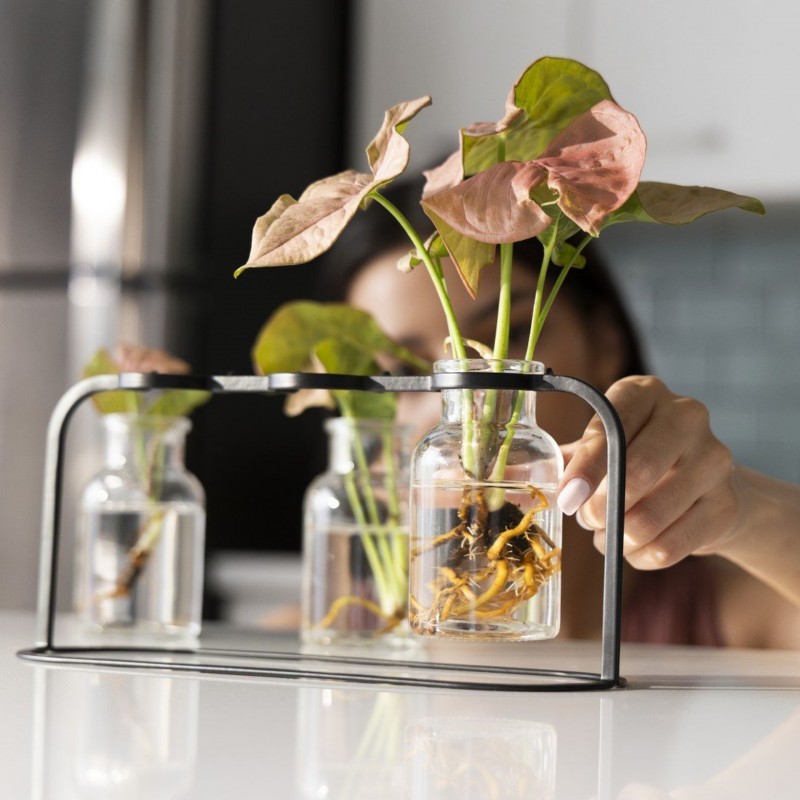 • Prémiové skleněné nádoby – umožňují bezpečné vyjmutí zakořeněné rostliny bez poškození kořenového systému
