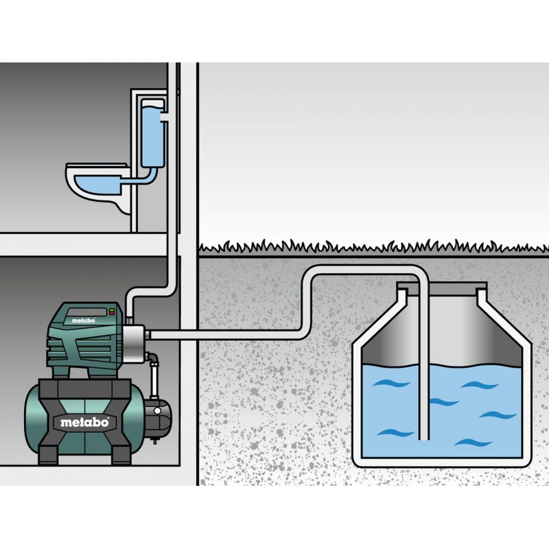 Díky tlakovému kotli umožňuje energeticky úsporný a tichý provoz. Elektronický tlakový spínač automaticky aktivuje systém při zvýšené spotřebě vody. O bezpečnost se stará funkce Metabo Pump Protection, která chrání čerpadlo proti chodu nasucho a poskytuje LED indikaci stavu.