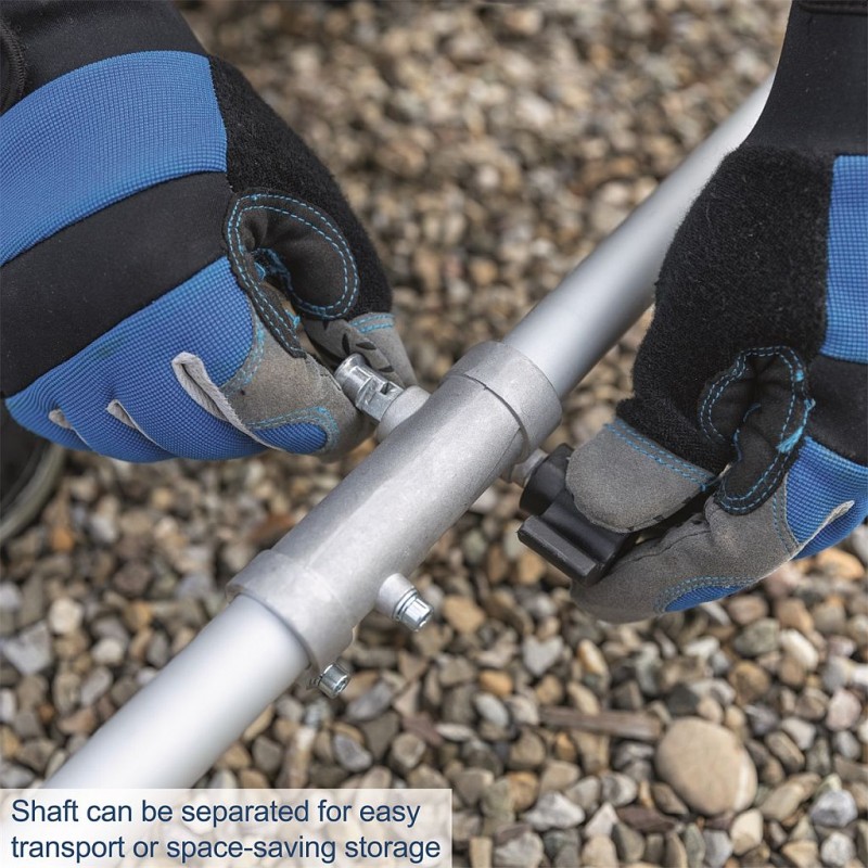 Křovinořez je poháněn silnými bateriemi 2x 20 V (celkem 40 V), které poskytují dostatek energie i pro náročné úkoly v členitějším terénu. S pracovní šířkou 380 mm při použití strunové hlavy a 255 mm při použití nože si poradí jak s trávníkem, tak i s hustým podrostem a drobnějšími nálety. Prémiový trojzubý nůž je navržen pro efektivní sečení i v náročných podmínkách, zatímco funkce Tap’n’Go u strunové hlavy umožňuje snadné poloautomatické prodloužení struny o průměru 1,6 mm. Pro zvýšení pohodlí při práci je křovinořez vybaven nastavitelnými řídítky s protiskluzovým povrchem a antivibračním uložením. Díky třem úrovním rychlosti (4000, 5000 a 6200 ot./min) můžete výkon snadno přizpůsobit konkrétním potřebám. Stroj se dá bez nutnosti použít nářadí demontovat, což výrazně usnadní přepravu nebo skladování. Stroj se dodává bez baterie a nabíječky.