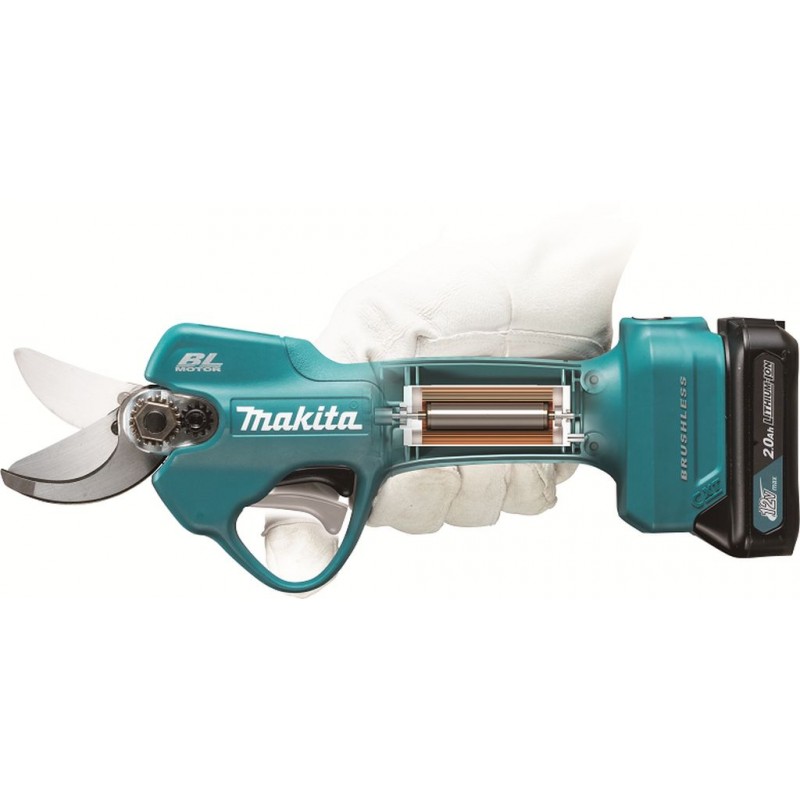 Nůžky umožňují velmi čistý střih větví až do průměru 25 mm a disponují spolehlivým bezuhlíkovým motorem pro dlouhou životnost a vysoký výkon. Technologie XPT umožňuje použití i v prostředí se zvýšenou prašností nebo vlhkostí. Praktický indikátor vybití akumulátoru a indikátor přetížení stroje zvyšují bezpečnost práce. Možné je nastavení dvou průměrů rozevření nožů – 18 mm a 25 mm.